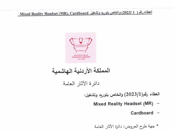 عطاء رقم (1) لسنة 2023 والخاص بتوريد وتشغيل Mixed Reality Headset (MR), Cardboard