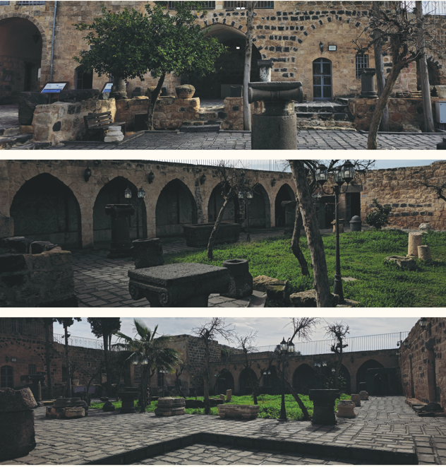 يضـــــم المتحـــــــف أربـــــــــع قــــاعـــــات تحكي قصــــــة الموقـــــع وجـــواره من العصــــــر البرونـــزي مروراً بالفتـــرات ( اليونــانيـــة والرومــانيــة والبيزنطيـــة) حتى الفترات الإسلامية بالإضافة إلى قـــاعة للتماثيل وسـاحة