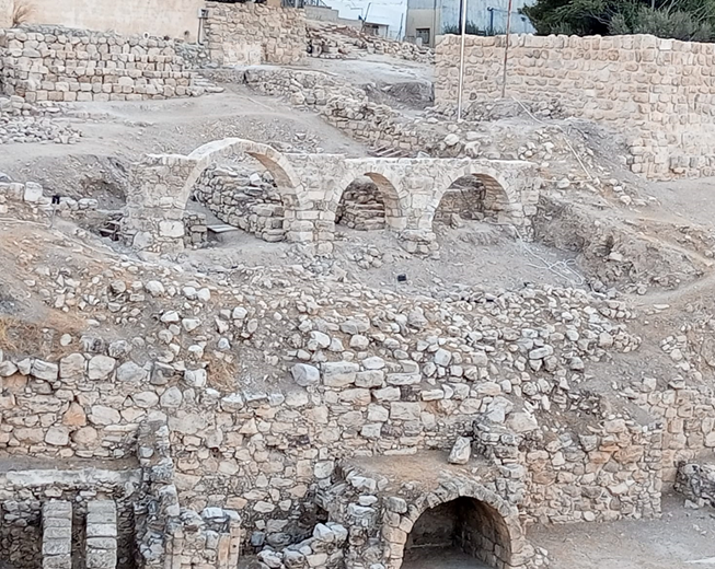 فقد أسفرت أعمال التنقيب الأثري في الموقع عن اكتشاف معبد مؤابي يعود إلى فترة العصر الحديدي الثاني المبكر، بالإضافة إلى حمام روماني في الجهة الشرقية من الموقع.